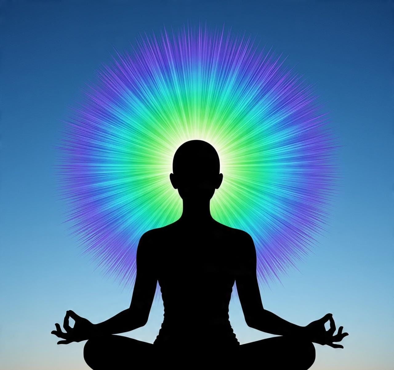 📷 Sugestão de imagem: Silhueta de uma pessoa meditando com ondas sonoras coloridas envolvendo a cabeça, simbolizando transformação mental.