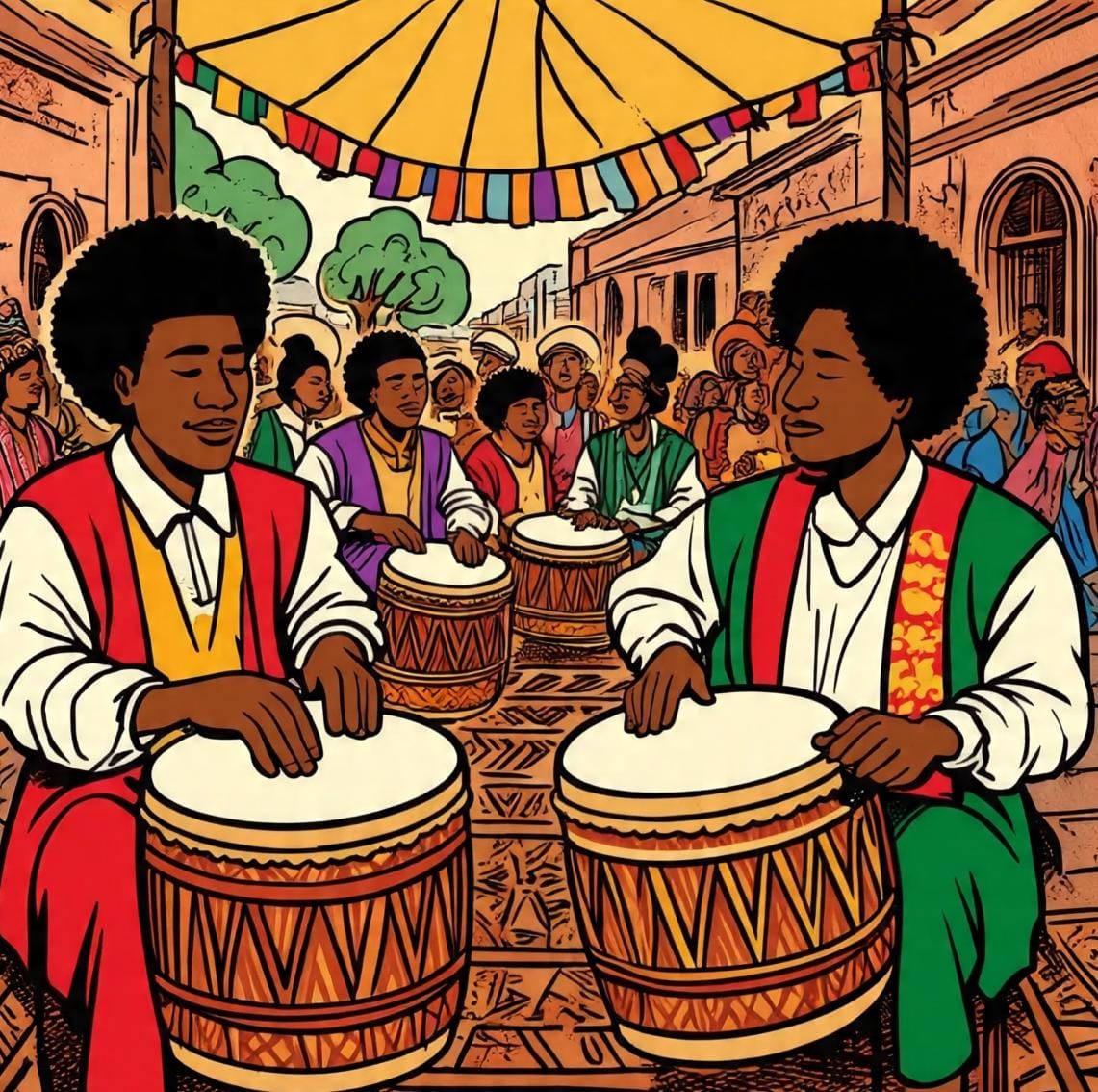 Tocar em grupo ativa um campo vibracional coletivo, onde a coesão rítmica pode gerar estados de transe leve e empatia profunda entre os participantes. Essa prática lembra antigos rituais de percussão usados para cura e comunhão espiritual.