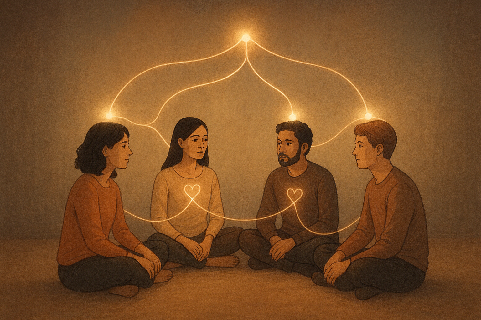 Terapias de grupo, sound healing, práticas de mindfulness, círculos de diálogo e rodas de cura adotam a escuta ativa para criar ambiente de confiança e segurança. Muitas tradições espirituais começam ou terminam rituais com períodos de escuta profunda — orações em silêncio, contemplação auditiva, escuta dos sons naturais para amplificação da presença.