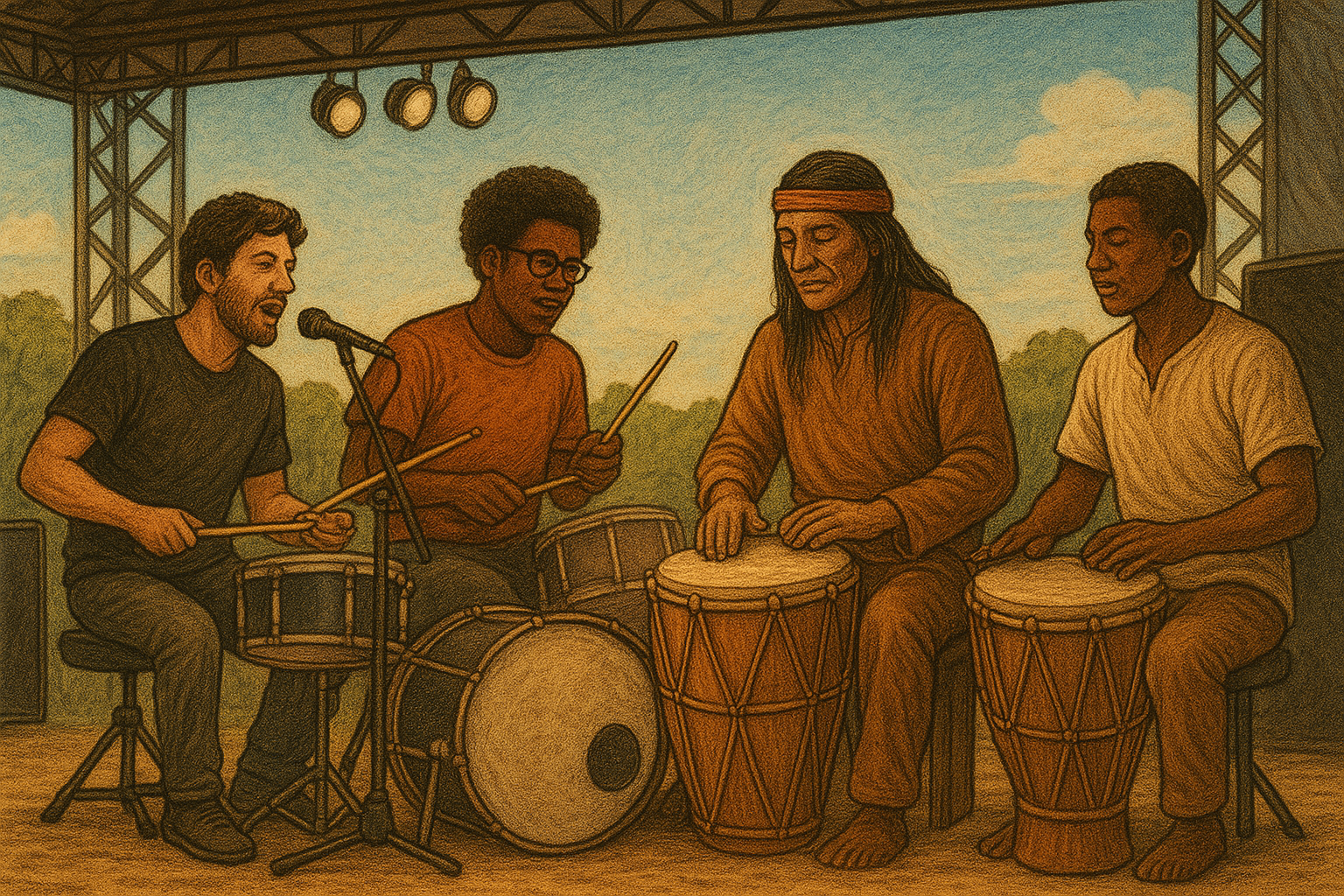 Entender os caminhos do tambor é reconhecer a trama que entrelaça África e Ásia, Europa e América, indígena e afrodescendente, ancestral e futurista. É perceber como uma simples pele esticada sobre madeira pôde atravessar desertos, oceanos e séculos, renascendo a cada geração com colorido local, mas mantendo o mesmo convite ao movimento, à presença, à coletividade. O tambor é instrumento de poder de reinvenção e símbolo de resiliência: mesmo proibido, apagado, colonizado, retorna com mais força — nos bailes, nos ritos de cura, nos protestos e nos palcos da contemporaneidade.