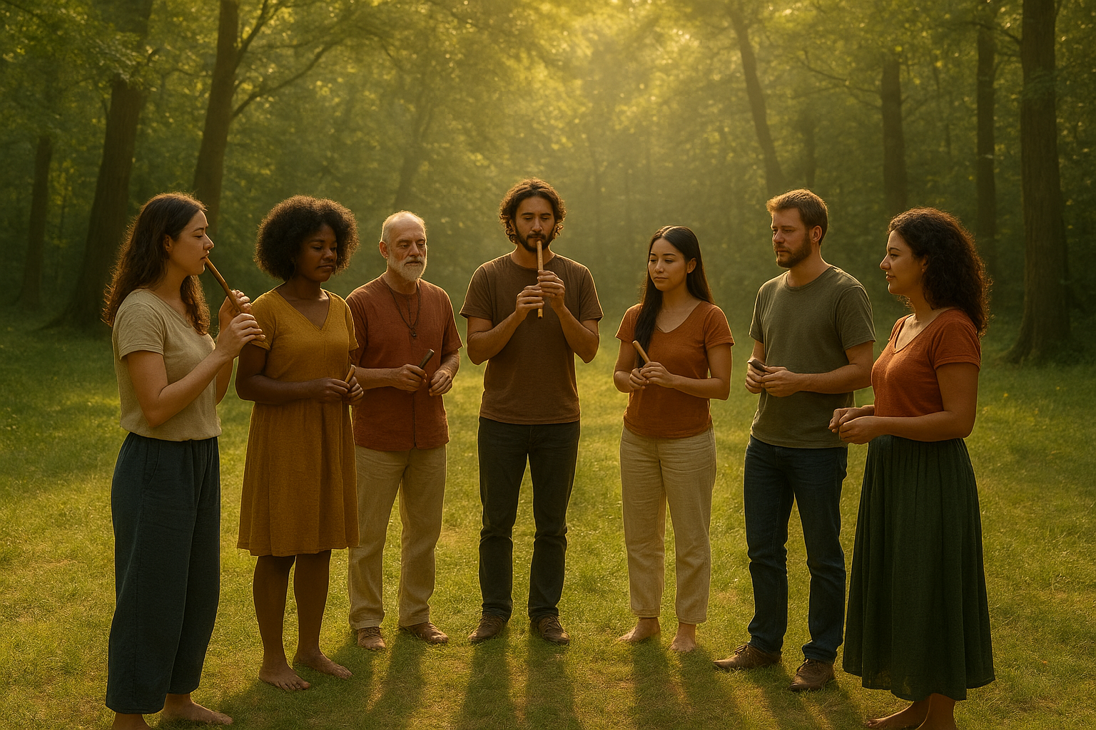 No contexto contemporâneo, marcado por pressa, isolamento e ruídos dispersivos, cada passo ritmado por um sino, chocalho ou flauta pode ser resistência e delicadeza. Favorecem saúde não apenas do corpo, mas da alma coletiva: alimentam o encontro, a contemplação, a festa e o luto, a força e o descanso, o resgate do brincar ancestral e da poética do caminhar consciente. Mesmo pequenas pausas com instrumentos já são gestos radicais de autocuidado e reconexão.
