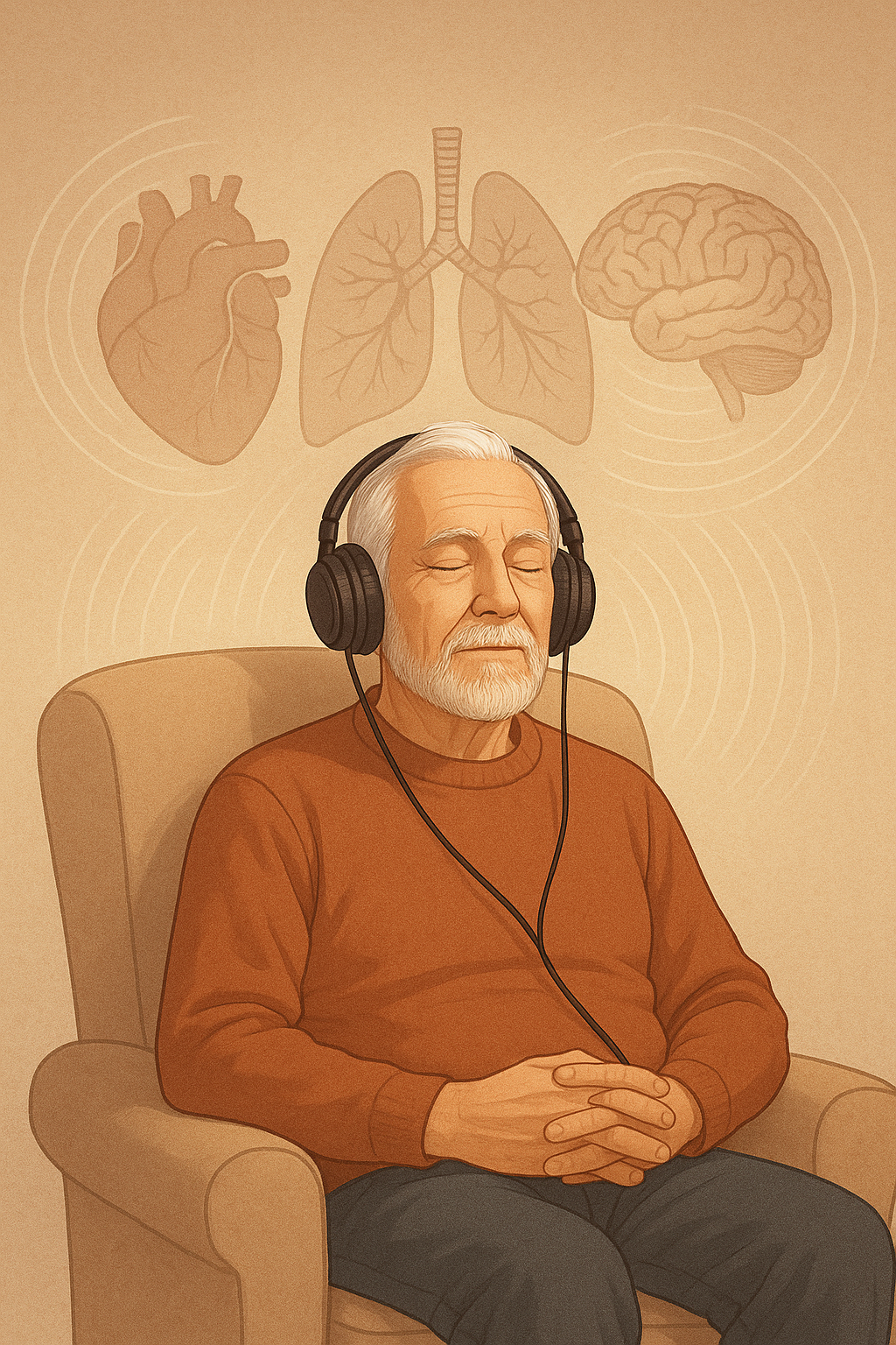 Ao associar música calma, som repetitivo e técnicas de respiração leve, o idoso aprende a reconhecer os primeiros sinais de ansiedade e a responder com padrões respiratórios mais organizados, diminuindo crises.