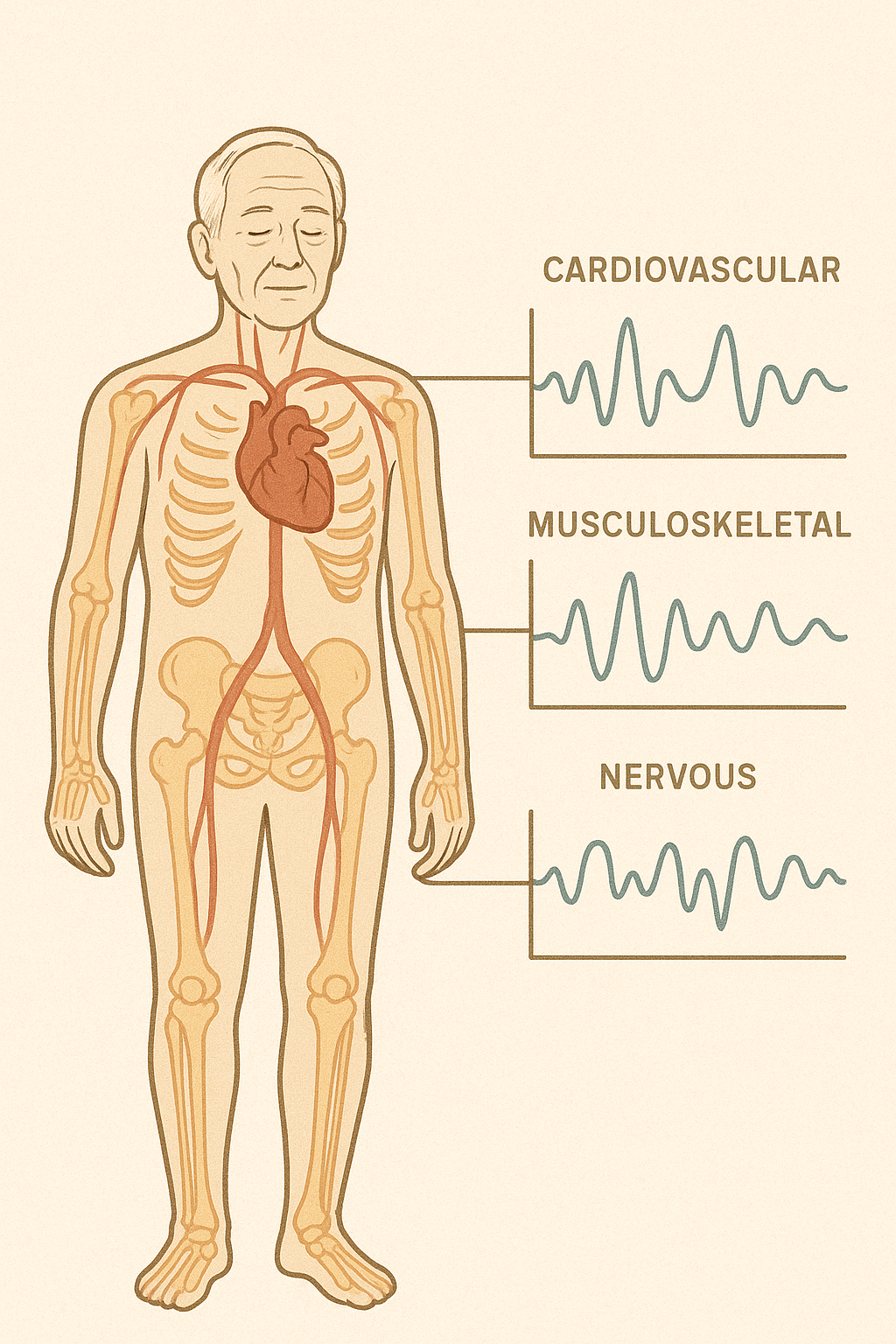 Do ponto de vista fisiológico, isso se relaciona ao equilíbrio entre o sistema nervoso simpático (acelera, contrai, prepara para luta/fuga) e o parassimpático (relaxa, dilata, favorece recuperação). Em muitas pessoas, décadas de estresse crônico mantêm o corpo hiperativado, contribuindo para aumento de pressão, taquicardia, inflamação e desgaste vascular.