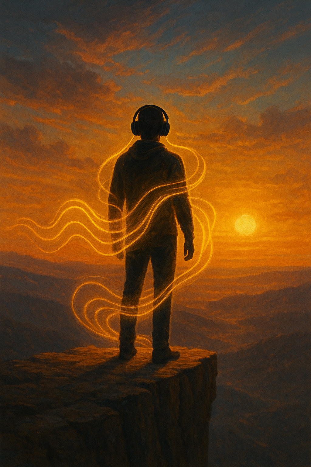 A Teoria Polivagal (Porges) fala de pistas de segurança: elementos do ambiente que dizem ao sistema nervoso que não há, agora, ameaça mortal. A voz calma de alguém confiável, o ronronar de um gato, o som suave de água corrente, um canto em tom carinhoso – tudo isso sinaliza ao nervo vago que é possível baixar a guarda. Quando usamos sons conscientemente (um mantra que conhecemos, um instrumento familiar, uma playlist-âncora), criamos um pequeno campo de previsibilidade em meio à incerteza. Isso não remove o medo, mas reduz a “altura da onda”, tornando mais possível navegar.